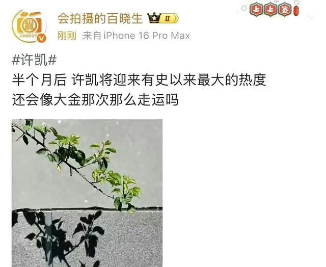 而今天又有狗仔放话说9月上旬,许凯将迎来他演艺生涯有史以来最大的热度!