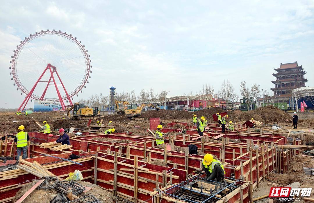 项目施工现场一片热火朝天的繁忙景象。万楼·青年码头三期-芙蓉国里房车酒店项目将以120台房车为基础,分为A、B两个区域,打造适合家庭游、亲子游的“房车酒店+露营营地”特色休闲度假区,与一期和二期形成市场互补、相互赋能。